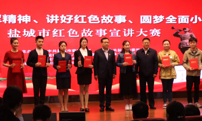 本次大赛以“弘扬铁军精神、讲好红色故事、圆梦全面小康”为主题,围绕反映盐城红色历史的“革命故事”、建设“强富美高新盐城”的“小康故事”,疫情期间奔赴抗疫一线的“抗疫故事”展开讲述。大赛分志愿组和专业组两个组别,选手们有的是在盐城爱国主义教育基地和红色景区专职岗位上从事宣讲工作的专业讲解员,有的则是在社区等基层单位宣讲红色故事的志愿者,还有来自各行各业的红色故事宣讲人。陈卓一是公司“盐城市理论宣讲传播研究基地”老员工志愿宣讲员,曾在“盐城市理论宣讲校地互动交流展示会”、“美丽阜宁接您归”上海理论宣讲等活动中进行宣讲。本次她以革命故事为选题,用最真诚的感情、最饱满的状态讲述了“五条岭”革命烈士、守墓人的《守护》故事,时而深情讲述,时而激情澎湃,现场观众仔细聆听、掌声不断。