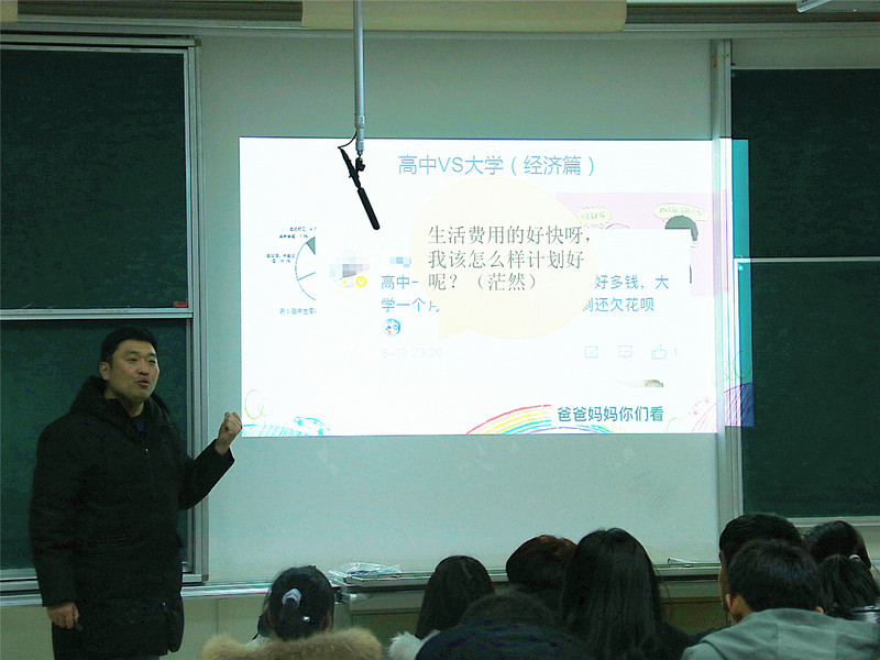 张绍刚老师通过“刻画”的方式,配以诙谐幽默的语言,形象化地向同学们展示了高中与老员工活的差别,引发同学们对老员工活的思考,并通过互动方式进行深度表达。根据员工们提出的问题,张老师从实际生活的角度切入,将员工入学适应期的表现划分为四个阶段:兴奋期、困惑期、调整期、稳定期,让同学们清晰自己目前的定位,从而找到解决烦恼的途径。接着,张老师针对具体定位提出了适应大学“三步走”方案,并结合员工实际从接受自己的大学、爱自己的专业、制定大学规划三方面分别提出了解决策略。最后,张老师还为同学们科普了有关抑郁症的知识,让同学们认识、理解、积极抵抗抑郁症的侵扰。