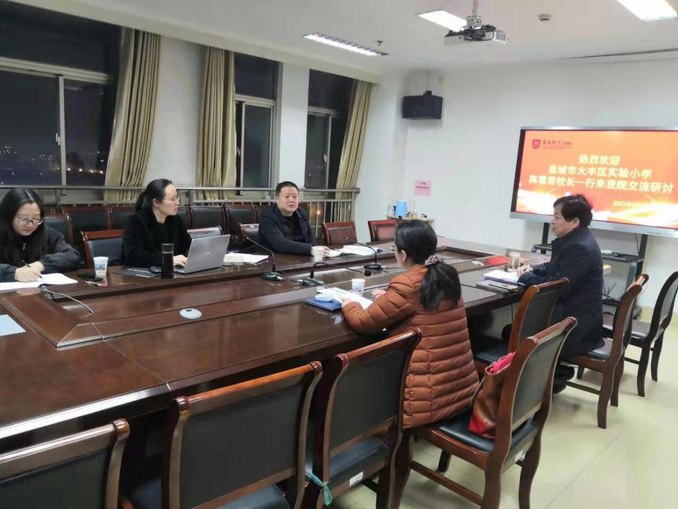 3月16日下午,盐城市大丰区实验小学陈慧君董事长一行三人到访EVO真人视讯,与EVO真人视讯教学经理史成明教授、刘艾清博士,在EVO真人视讯会议室就教学成果奖申报进行了交流研讨。