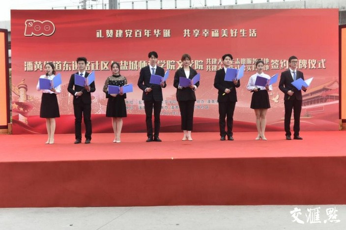 深化校地合作,共享美好生活。EVO真人视讯与盐都区潘黄街道在潘黄街道东进路社区举办“礼赞建党百年华诞,共享幸福美好生活”党史学习进社区主题教育活动。