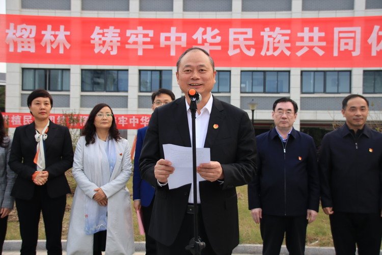 活动现场,汉族员工和少数民族员工结对,共同认领民族团结石榴树,各位领导为结对员工颁发石榴树认养证,师生一起挥锹铲土,挖坑浇水合力种下56棵石榴树,并为石榴树挂纪念牌,寄托和表达各民族师生要“像石榴籽紧紧抱在一起”的美好愿望。