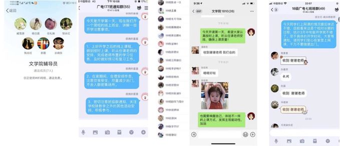 同学们对待网课态度积极认真,课上踊跃参与,赢得了老师们的一致好评。西藏一位同学在没有电脑,网络不稳定的情况下,依旧坚持在老师的指导下用手机进行线上学习。公司的职工们也积极参与了线上学习,身在泰国的职工李嘉杰在课后讨论中表达了对公司、老师、同学的思念:“泰国很好,但很想回到盐城,想念老师们上课的样子,想念和同学们在一起的时光,希望大家照顾好自己,一起加油!”