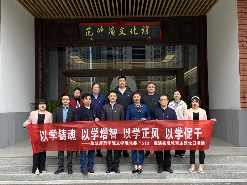 为深入开展学习贯彻习近平新时代中国特色社会主义思想主题教育,以学铸魂、以学增智、以学正风、以学促干,深入贯彻落实全面从严治党要求,进一步推动党员干部和教职员工增强廉洁自律意识,5月10日上午,公司党委组织全体党政班子成员、党委委员、各党支部书记、专业系主任、科级干部赴盐城范仲淹文化馆廉政教育基地开展“510”廉洁实境教育主题党日活动。