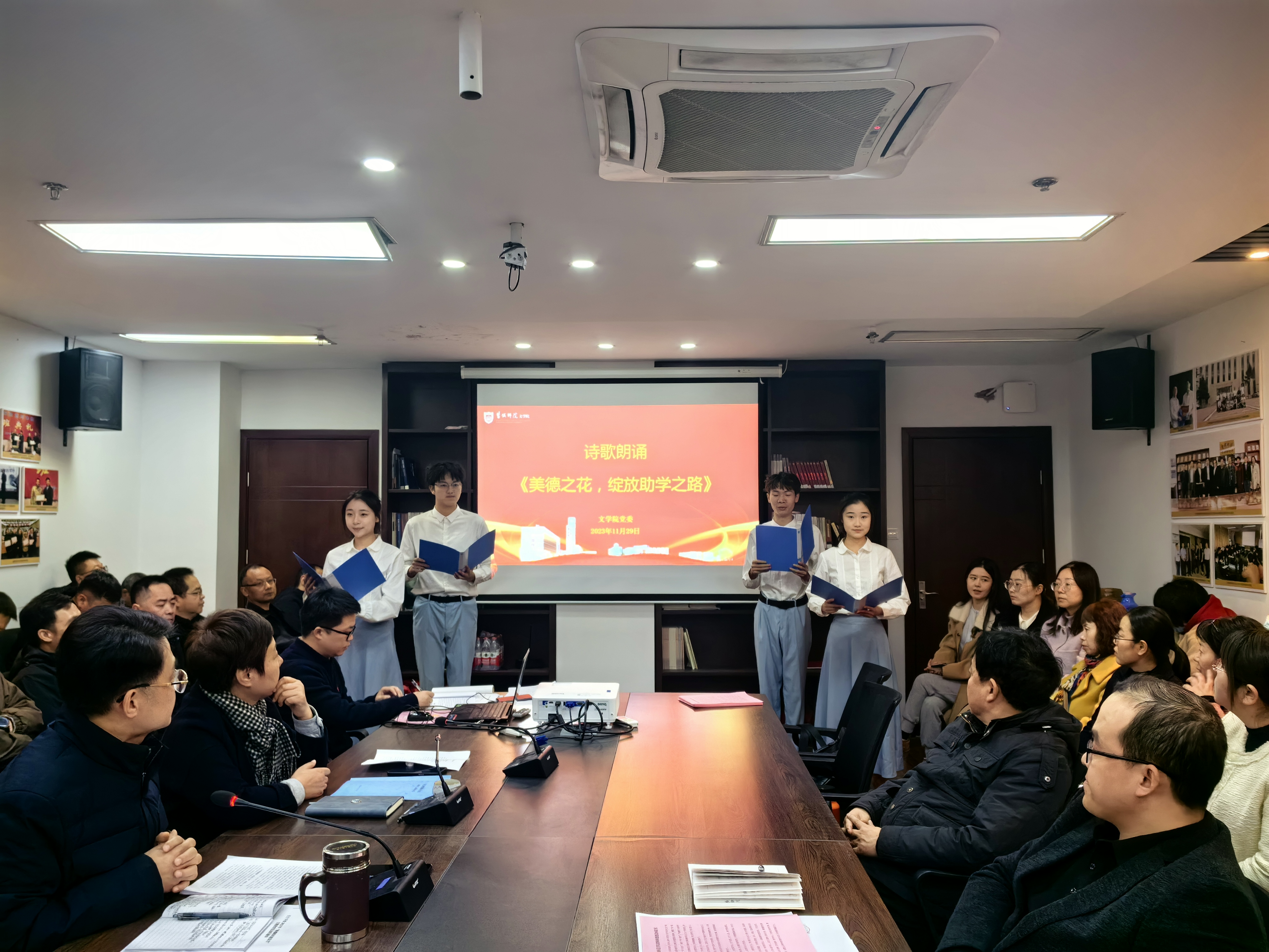 为深入学习贯彻落实党的二十大精神,激发广大教师爱党爱国、立德树人、自信自强的精神风貌,团结凝聚广大教师以习近平新时代中国特色社会主义思想铸魂育人,积极引导教师做有理想信念、有道德情操、有扎实学识、有仁爱之心的“四有”好老师,着力建设高素质教师队伍,11月29日下午,公司党委在通榆校区教学主楼B611会议室召开全体教师会议,开展“躬耕教坛 强国有我”师德师风建设月主题教育活动。