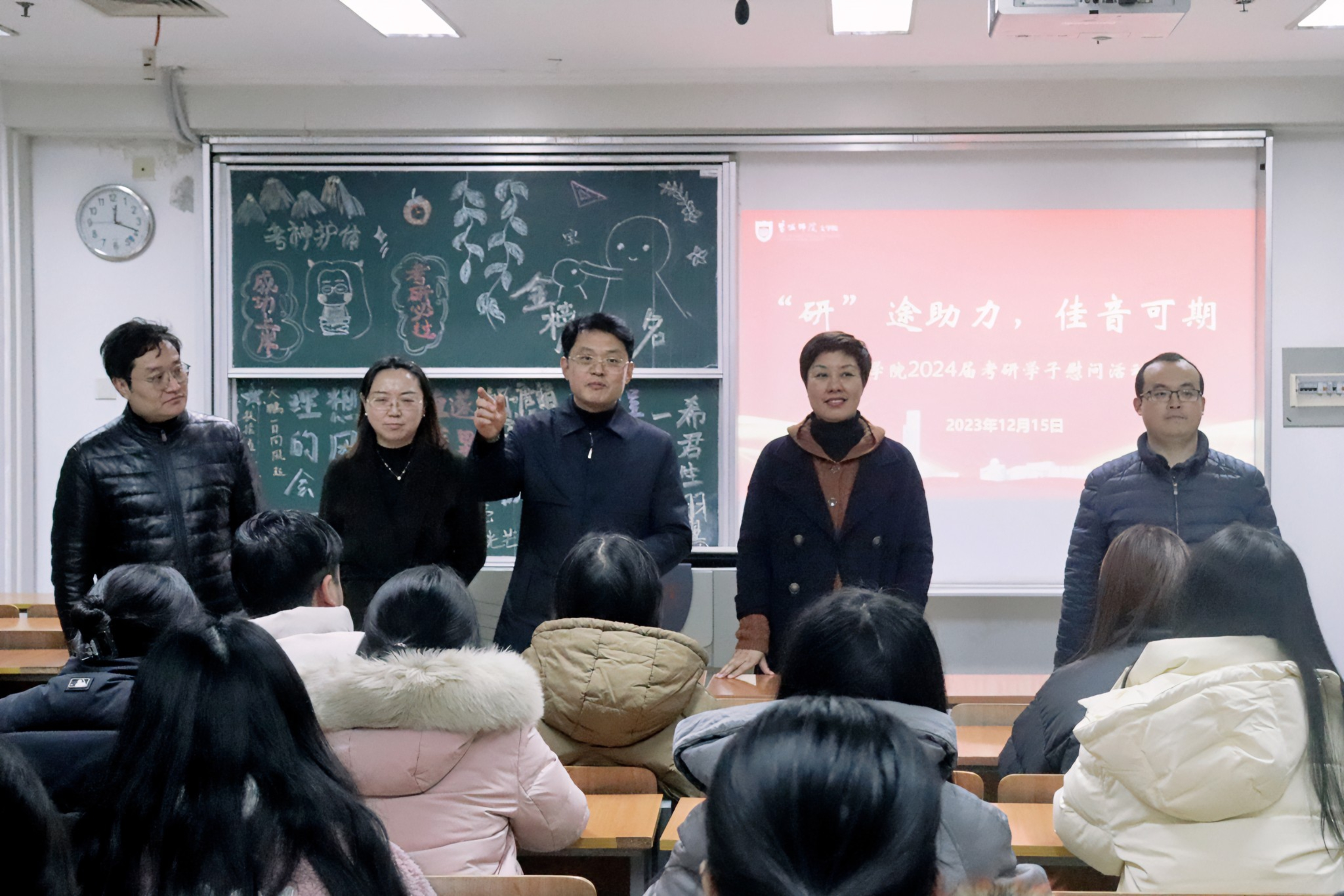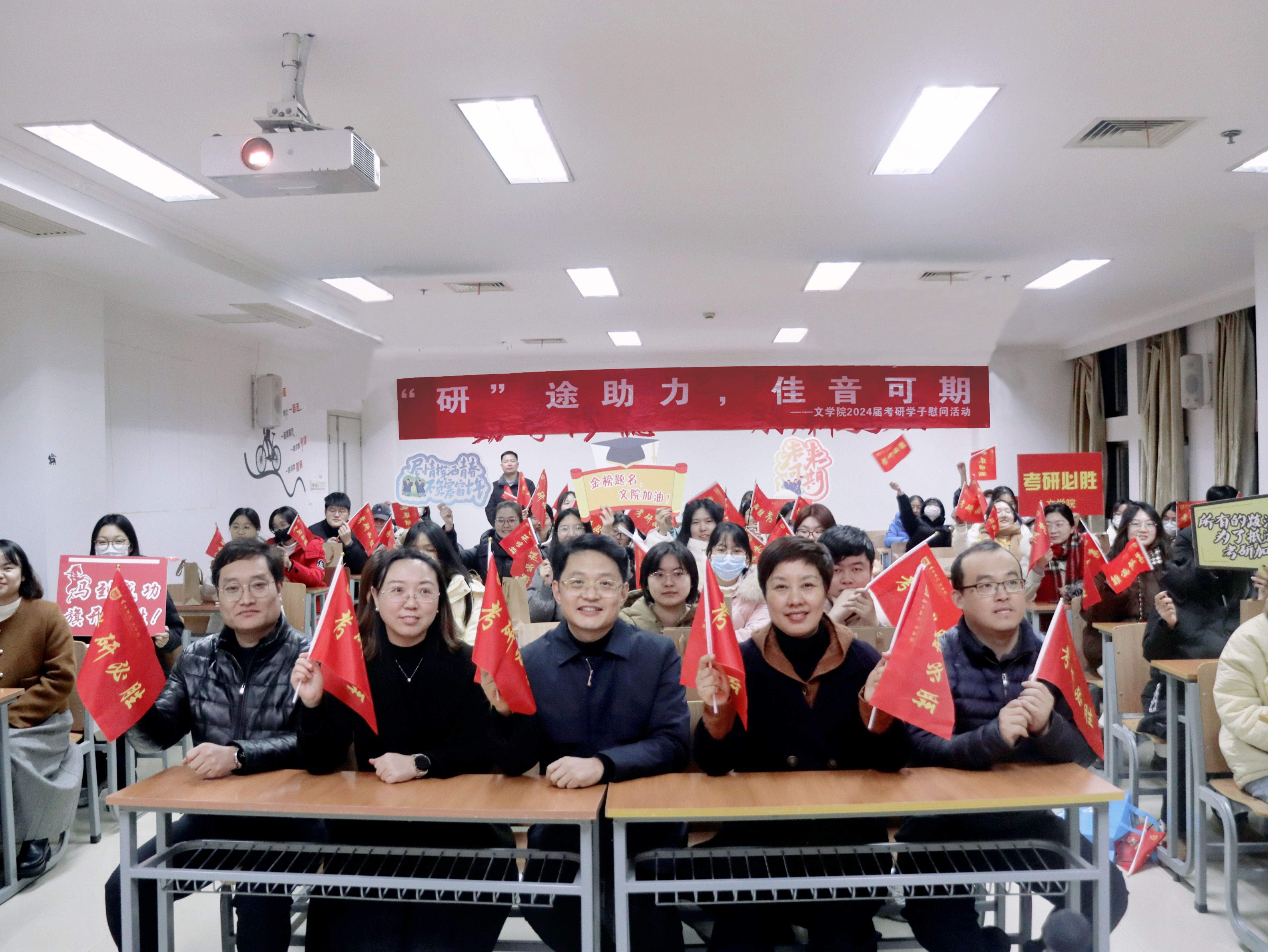 12月15日下午,公司开展“研途助力,佳音可期”考研慰问活动。公司党政班子全体成员与全体辅导员一同深入考研教室亲切看望、慰问即将奔赴考研“战场”的同学们,为他们加油鼓劲,给他们送去温暖、关爱和信心。
