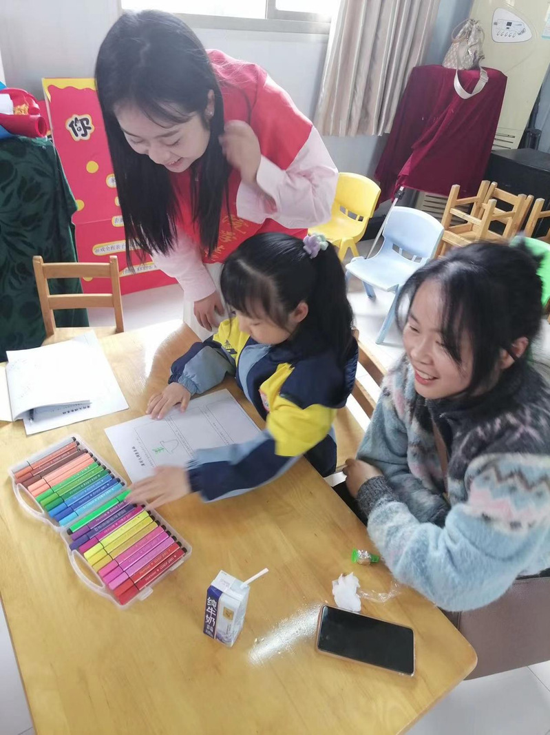 在亲子手工制作环节,家长与小朋友们共同制作手工作品《爱读书的孩子》。小朋友们拿起手中的彩笔,发挥想象,画出心目中自己的模样和喜欢阅读的书籍。期间,老员工党员志愿者帮助小朋友们更好地完成他们的作品,在他们的共同努力下,一个立体手工制品就做好了,小朋友们纷纷表示今后要做一个爱读书的小孩。