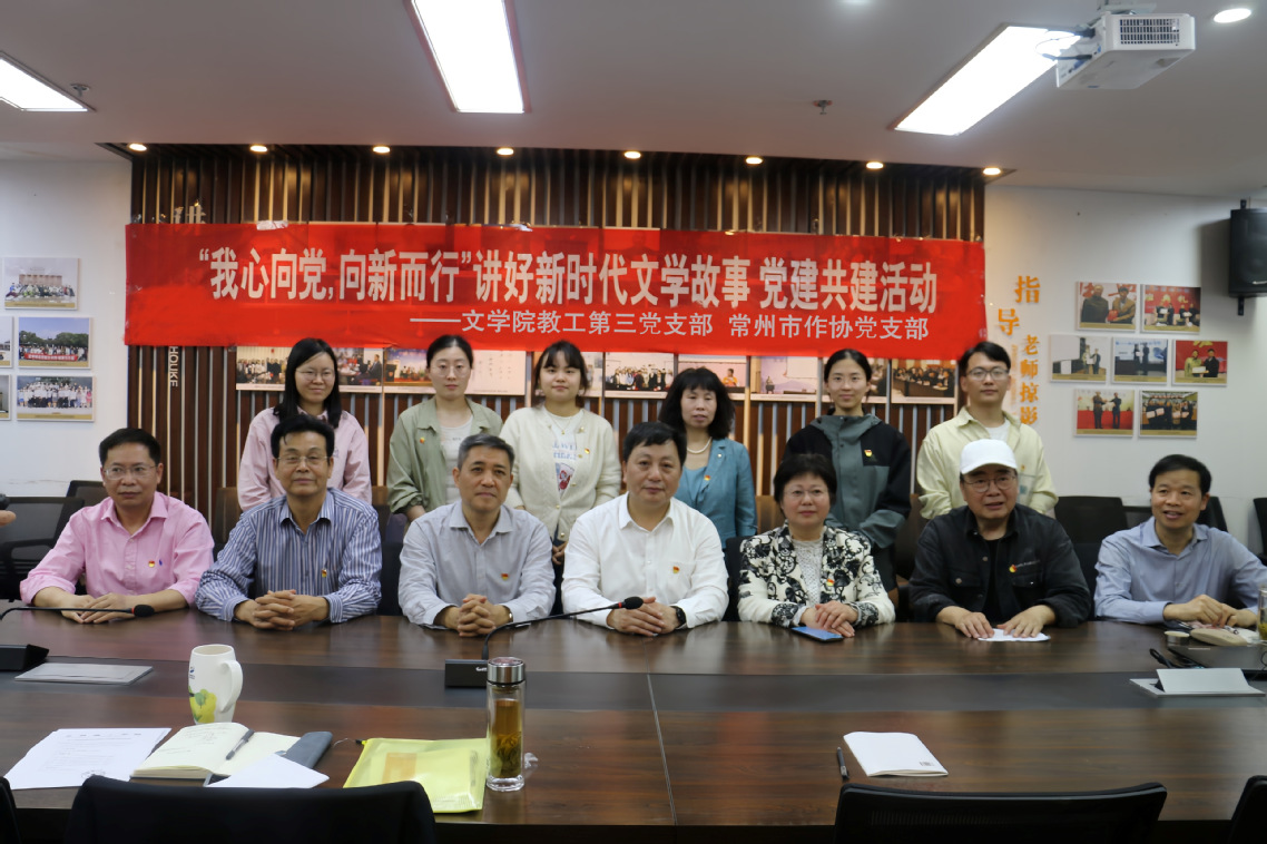 5月10日下午,EVO真人视讯教工第三党支部与到访的常州市作家协会党支部,在江苏省作家资源中心举行了主题为“我心向党,向新而行——讲好新时代文学故事”的党员结对共建活动,常州市作协党支部书记卞优文、主席李怀中及常州市各市区级作协主席、EVO真人视讯教工第三党支部书记王玉琴及支部党员焦丽梅博士、徐明翔博士等参加了活动。