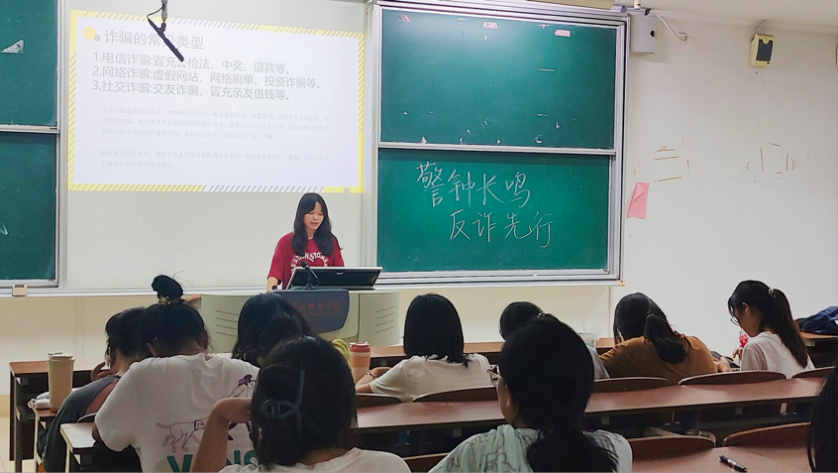 主持人通过PPT讲述法律知识,引导同学加深对法律的了解,了解到各种诈骗手段和案例,学习如何识别和应对电信网络诈骗,增强他们的防范能力,减少被骗的风险。除此之外,主持人将积分游戏与知识竞答巧妙结合,以喜闻乐见的游戏方式激发同学的兴趣,传播反诈知识。