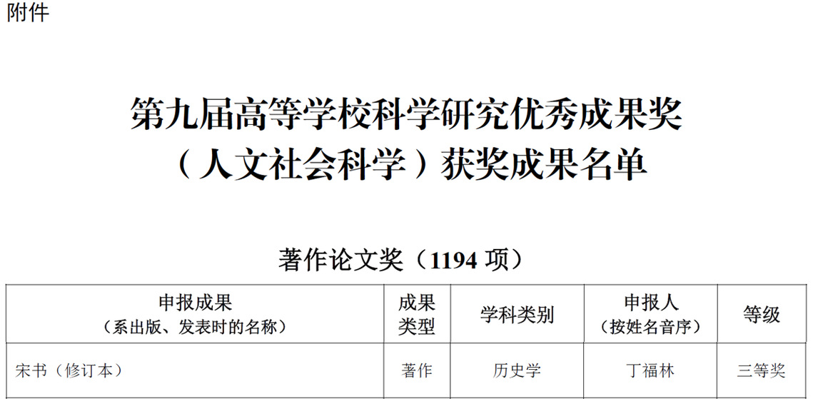 近日,《教育部关于第九届高等公司科学研究优秀成果奖(人文社会科学)奖励的决定》(教社科〔2024〕4号)正式公布,公司丁福林教授《宋书(修订本)》喜获三等奖。