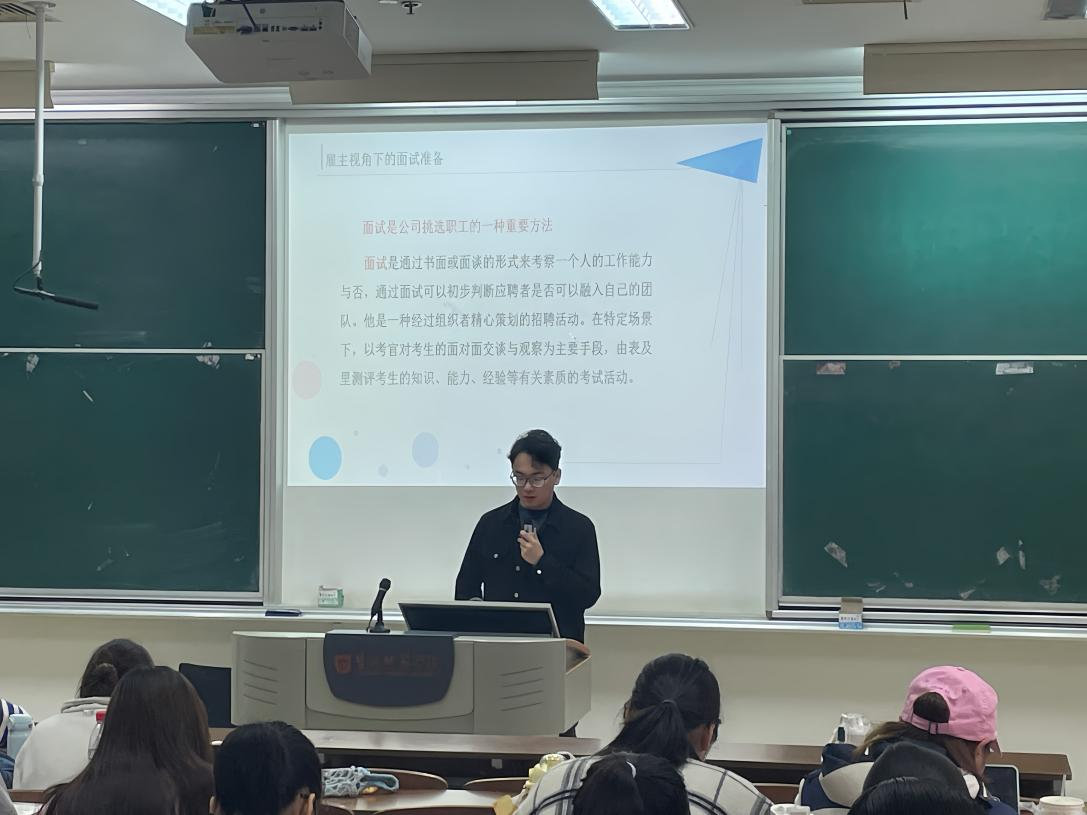 贤师之道,精准聚焦。萃集往来经验,朱有程以当前就业市场形势和专业求职优势为两大抓手,向同学们介绍了雇主的视角中简历制作的关键,指导员工如何根据不同的职位制定个性化的简历。在面试方面,主要讲解了结构化面试、半结构化面试和无领导小组讨论的基本内容和注意要点,帮助同学们跳出固有思维,实现面试自如。