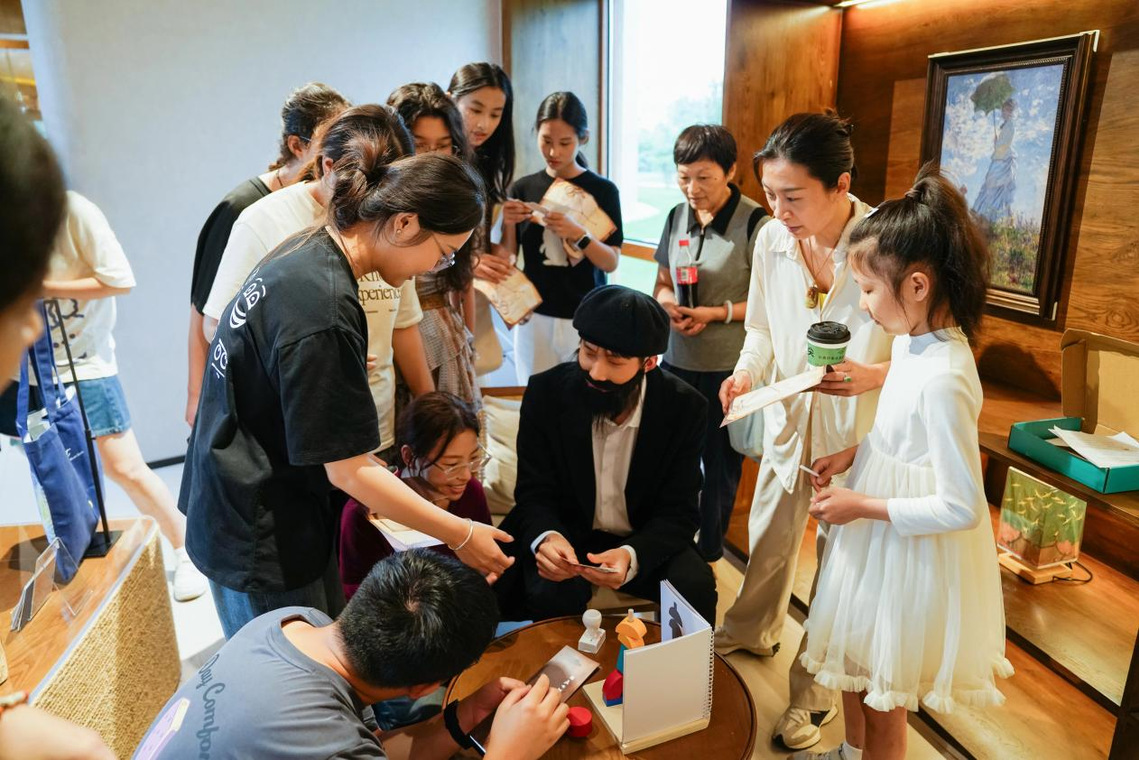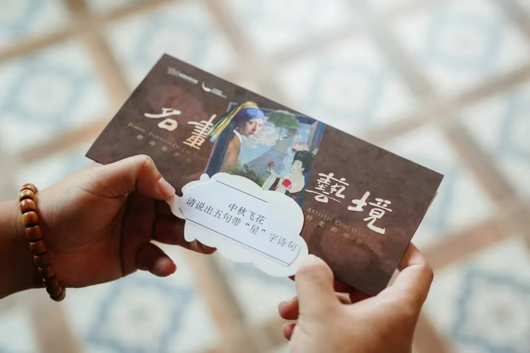 在盐城市美术馆工作人员的指引下,同学们开展了“名画艺境”剧本探秘游。在游玩过程中,大家见到了华夏盛唐的簪花仕女、对话了西方著名画家梵高……在各位穿越古今中外的角色指引下,大家合作完成了猜灯谜、解谜题、寻宝物等各种关卡,取得最后胜利。