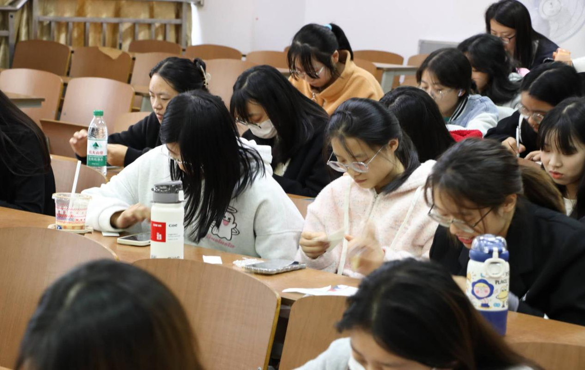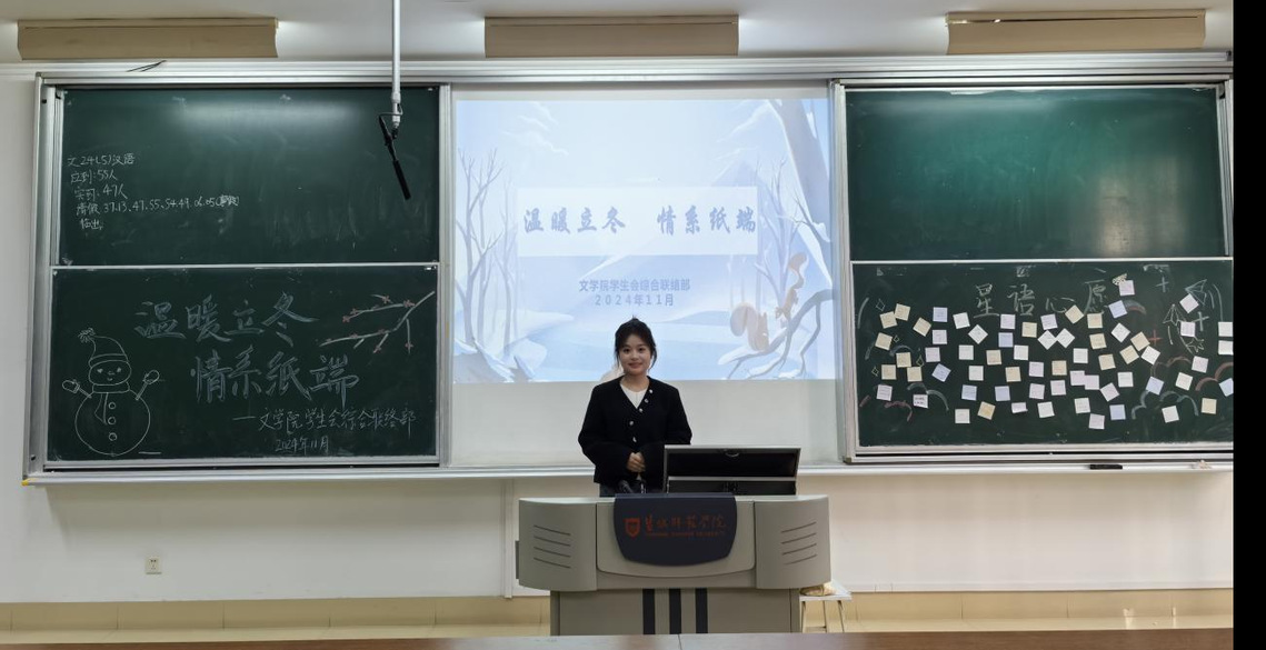 此次活动分为“书香立冬”“立冬养生”“巧工手艺”和“情系纸端”四个环节。主持人先介绍了立冬的文化内涵,讲述补冬、吃饺子、酿黄酒和扫桥的传统习俗。接着介绍了立冬的气候特点,分享养生食谱,组织同学们进行“雪花剪纸”活动。最后,主持人热情鼓励同学们在便利贴上写下自己对今年冬季的美好期望与人生规划,并贴在星语心愿墙上展示。