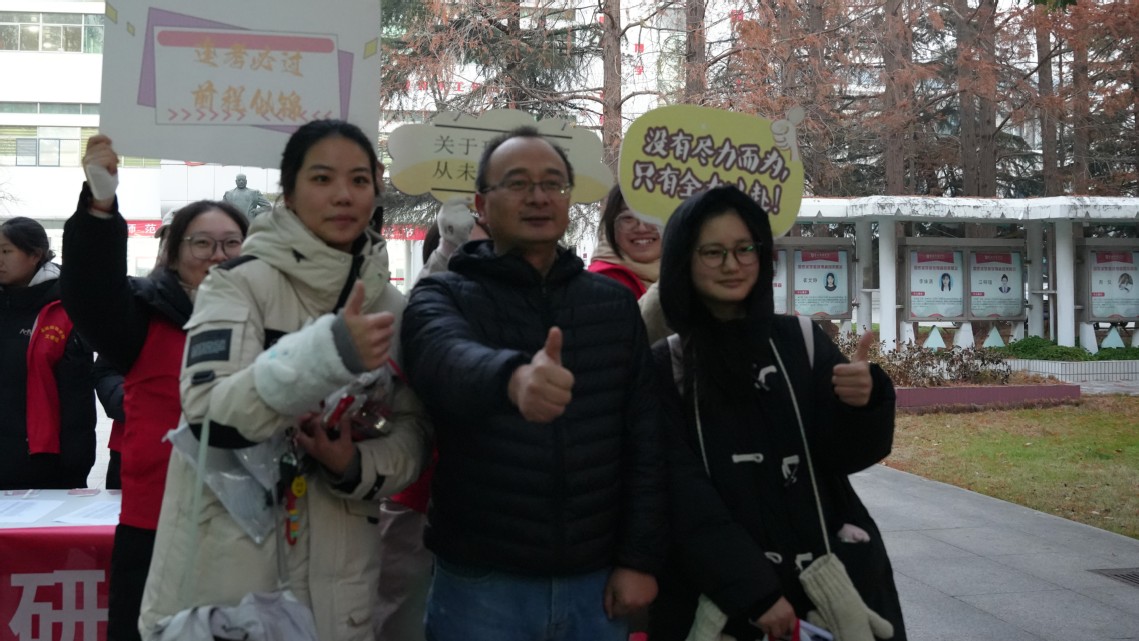 等看东风传捷讯,桂林折得最高枝。12月21日,2025年全国硕士研究生招生考试如期拉开帷幕,为助力考研学子以饱满信心踏入考场,EVO真人视讯精心筹备“‘文’暖寒冬绘梦想,‘研’途璀璨绽光芒”考研送考活动。公司党委副书记葛媛媛、毕业班班主任吴学峰、全体辅导员老师参加本次活动。