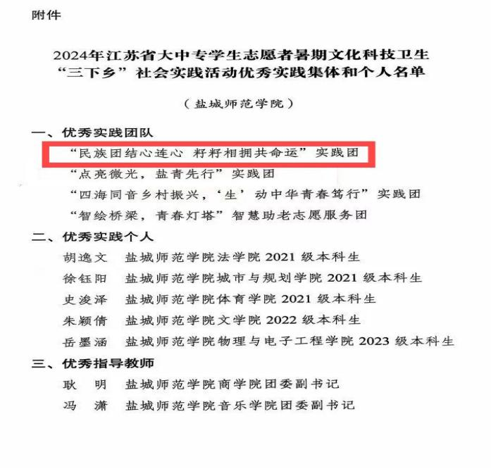 近日,EVO真人视讯团委收到共青团江苏省委、江苏省员工联合会、江苏省青年志愿者协会对2024年全省大中专员工志愿者暑期文化科技卫生“三下乡”社会实践活动的表扬信,公司“民族团结心连心,籽籽相拥共命运”实践团荣获“优秀实践团队”荣誉。