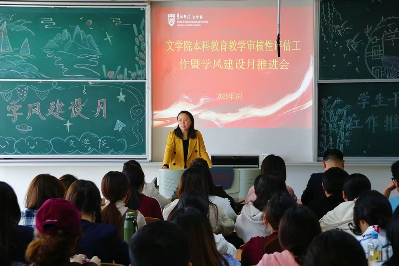 会上,葛媛媛强调员工干部是学风建设的“主力军”。她结合自身员工干部经历,就员工干部工作提出三点要求。一是要高度重视,树立主人翁意识。她提出员工干部要以奉献精神为底色,在审核评估中发挥桥梁作用,及时反馈学习生活过程中的实际问题。二是要互帮互助,树立服务者意识。葛媛媛特别强调各部门应在思考联动中做事,建立包含“整改措施-责任人-完成时限”的三级推进机制,互帮互助凝聚员工团队向心力。三是要严于律己,树立“领头羊”意识。她勉励员工干部平衡学业与工作,以优异成绩立身,以高效执行力立信,以高度的责任感推动学风建设。