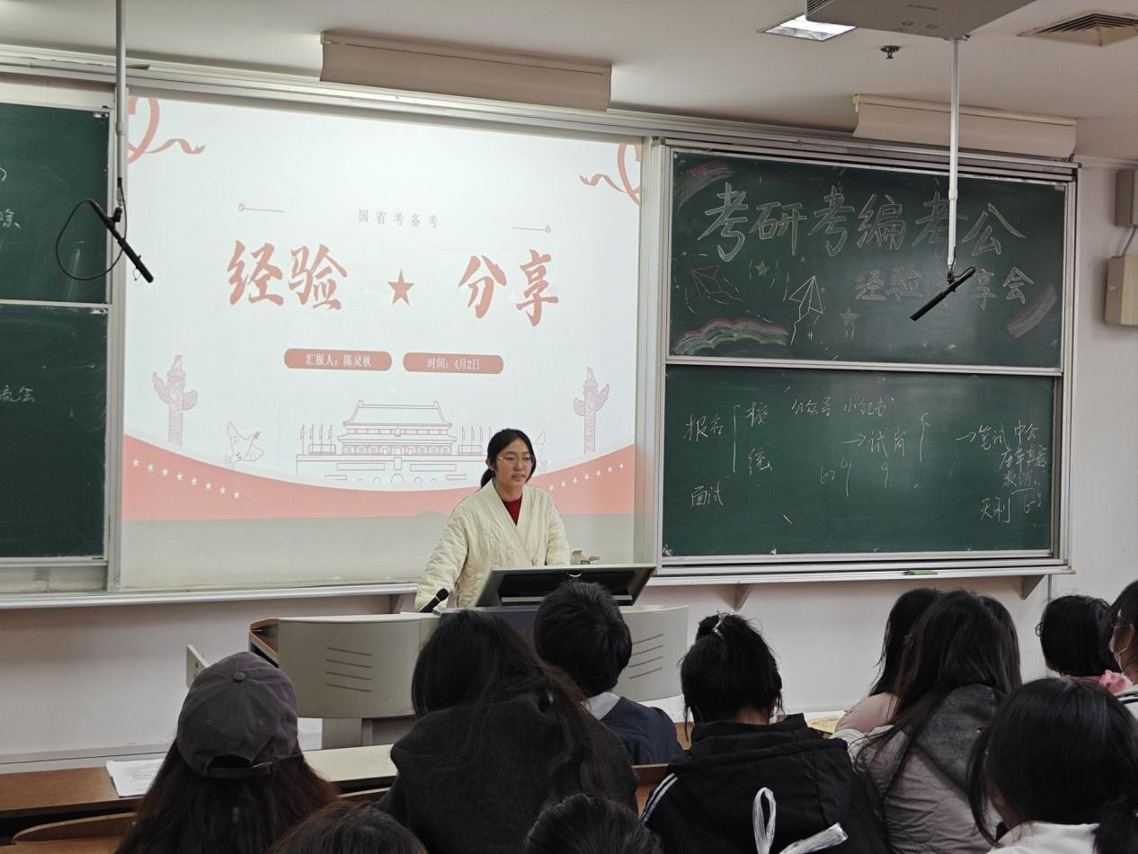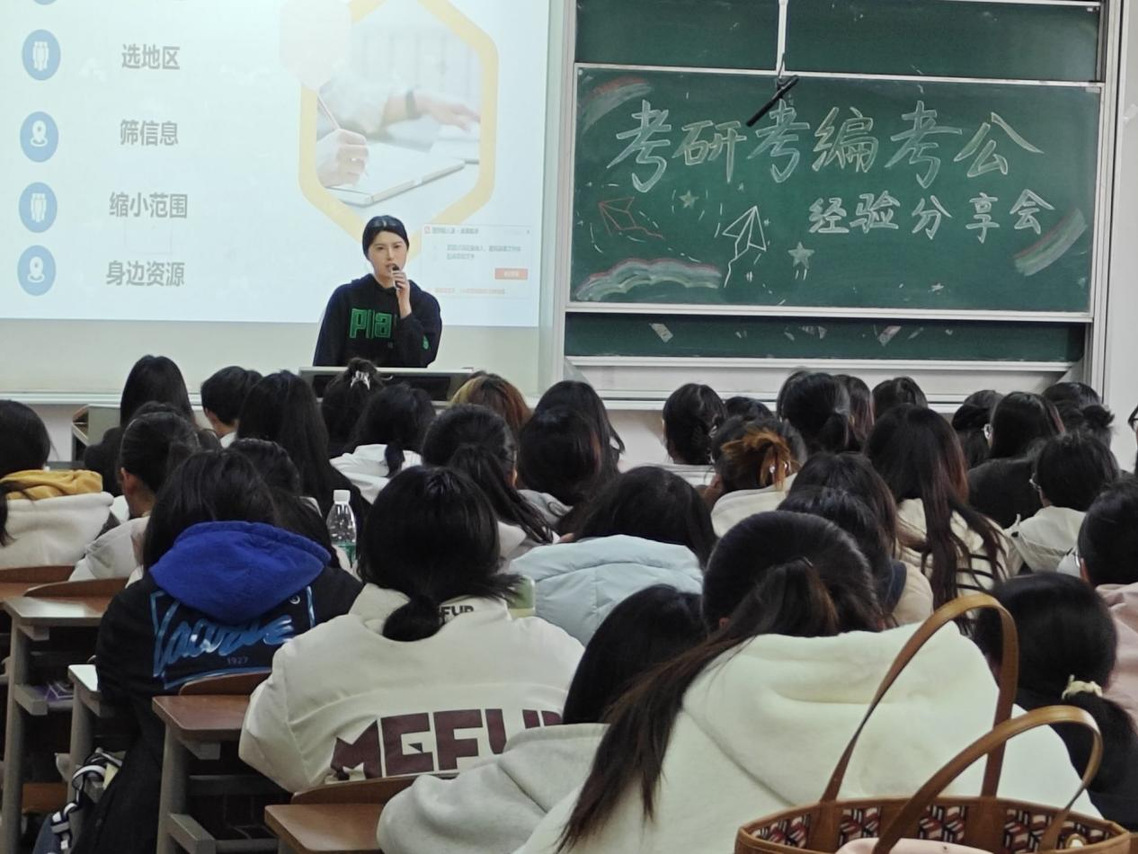 此次经验分享交流会,学姐们结合自身考研、考编、考公的实战经历,为同学们提供了宝贵的备考经验和技巧,同学们不仅掌握了科学的备考策略,也进一步明确了自身目标与努力方向。我们必将这份经验转化为行动力,在未来的备考道路上稳扎稳打,一步步向理想迈进!