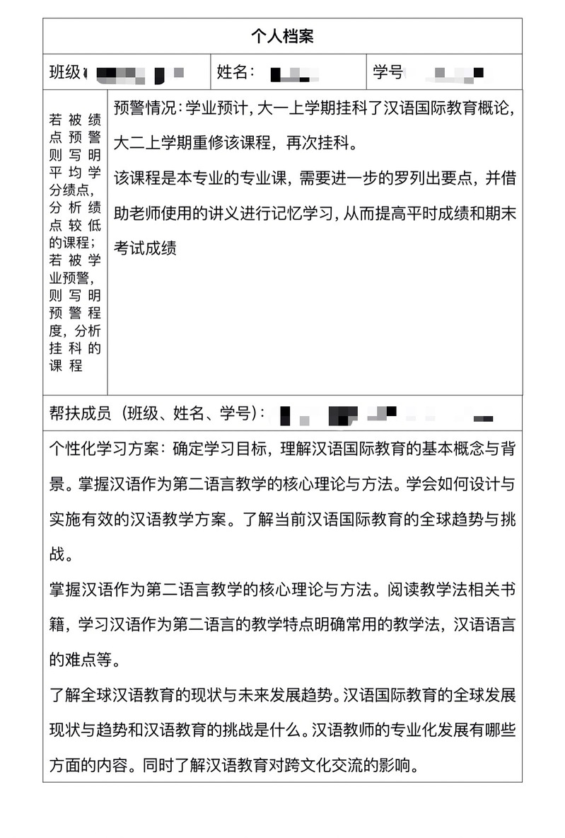 本次帮扶重点围绕重难点学科、重修科目与英语四六级等内容开展。公司辅导员借助AI软件和人工校对对班级员工学习成绩单进行了全面分析。活动通过自愿组队、一对一诊断辅导、线上打卡监督等多重形式对员工进行个性化学习安排,有效促进了员工间的互帮互助,活动期间共收到140多份小组记录反馈表,参与员工普遍反映在时间管理、学习效率等方面取得明显进步,小组都按时完成学习计划并形成良好学习习惯,通过学习时的互相合作,员工解决问题的能力得到了提高。