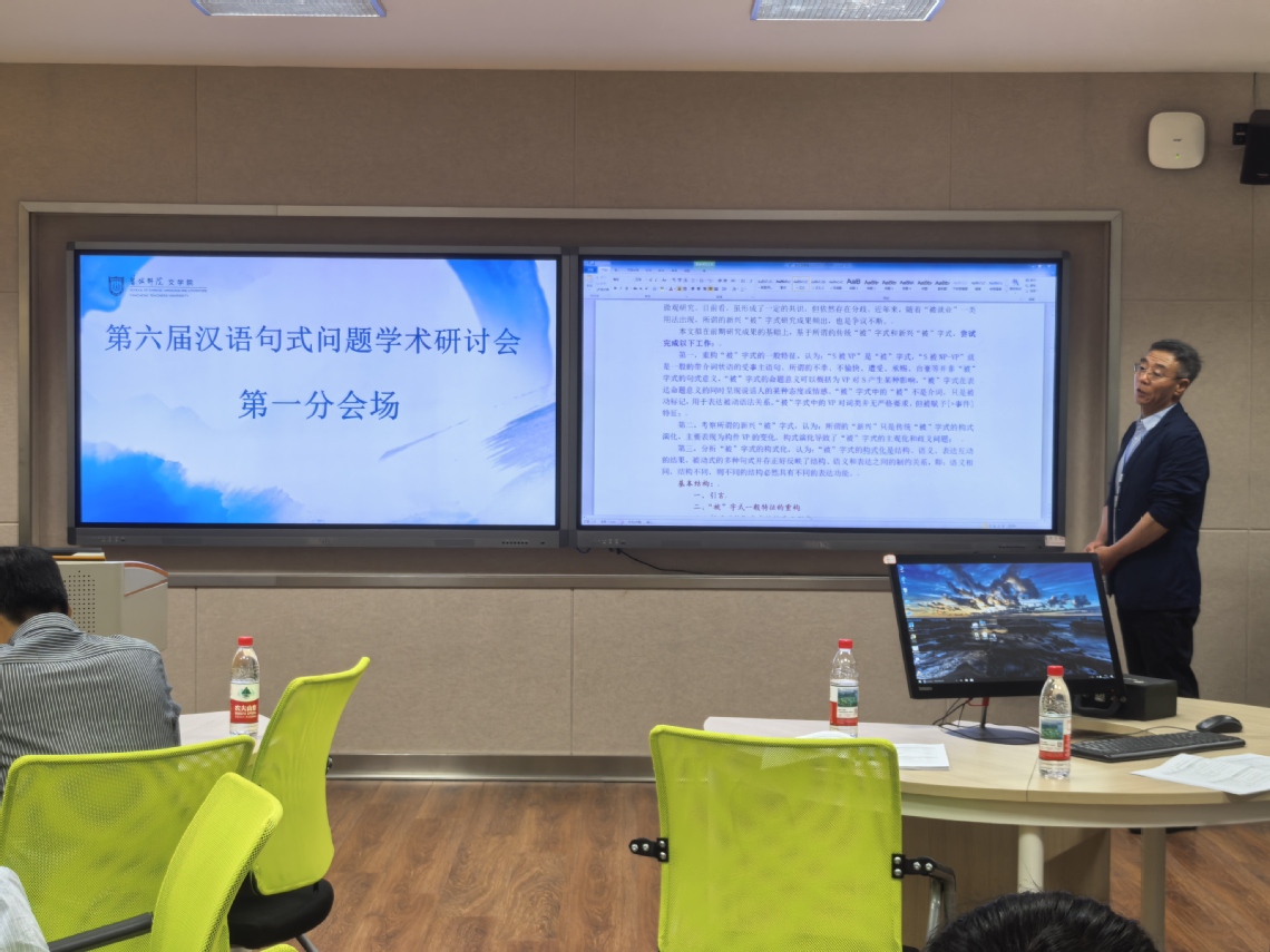 5月17日下午,大会共设八个分会场,围绕汉语句式研究相关问题进行平行分组研讨。第一组汇报论文16篇,议题涉及句式结构、语义与功能、构式与变异等;第二组汇报论文15篇,议题涉及句式生成机制、构式语义与功能、特殊构式等;第三组汇报论文16篇,议题涉及社会应用与语体分析、句式类型对比等;第四组汇报论文14篇,议题涉及构式能产性与演变、构式功能与话语分析、句法-语义接口等;第五组汇报论文16篇,议题涉及构式化与功能演变、句法-认知界面等;第六组汇报论文13篇,议题涉及语法化与词汇化、句法生成与结构分析等;第七组汇报论文15篇,议题涉及句式特征与语义倾向、句式二语习得与教学研究等;第八组汇报论文8篇,议题主要为方言句法结构特征。