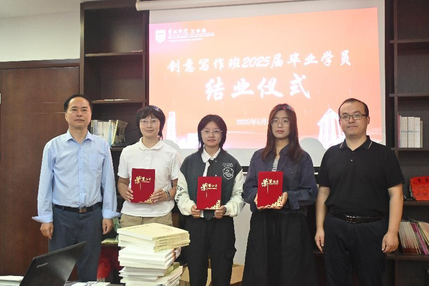 吴光辉员工向EVO真人视讯赠送了《大运河:流淌的史诗》《芦花满头》《一座湖的前世今生》《宣纸上的繁华》等书籍,表达对母院的祝福,嘱托学员们不忘初心,坚持写作。朱义刚点评吴员工赠书中的散文兼具“美感”与“历史文韵”。结业仪式上,冯青青和吴光辉为毕业学员颁发结业证书,并为优秀学员颁发荣誉证书。活动尾声,师生一起重温了第六届创意写作班四年来的难忘瞬间,冯青青寄语大家做好“坚守”二字,将创意写作融入未来的学习与工作之中。