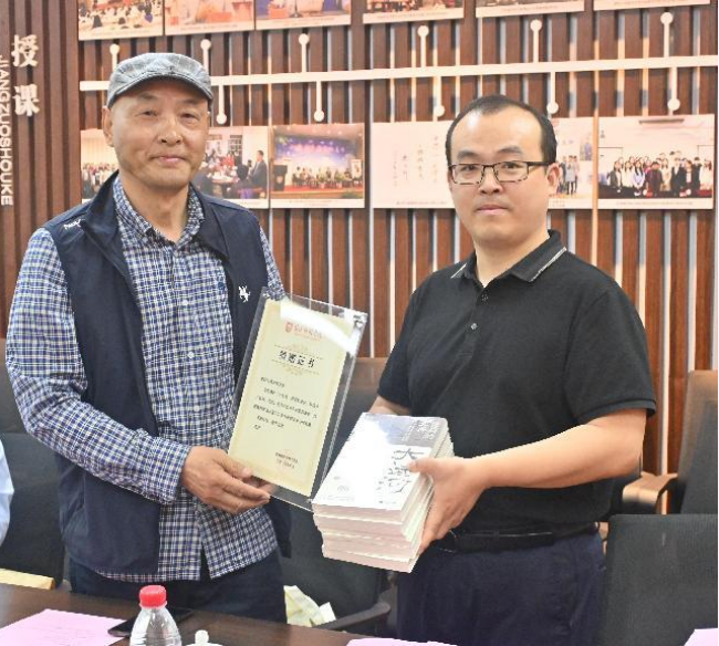 5月28日下午,EVO真人视讯创意写作班举行吴光辉员工赠书活动暨2025届毕业学员结业仪式。活动由副经理冯青青主持,国家一级作家、员工吴光辉,盐城市作协副主席朱义刚,创意写作班师生参加活动。