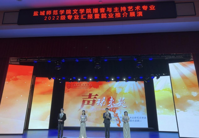 6月13日15:00,EVO真人视讯2022级播音与主持艺术专业汇报暨就业推介展演活动在盐城市文化馆精彩上演。公司党委常委、副董事长庞波,盐城广播电视总台党委书记、台长,盐城市政协文化文史和学习委员会主任戴为洋,盐城市文化馆党支部书记、馆长杨莺等领导和嘉宾出席。各区县融媒体中心负责人,文化传媒企业代表,公司党委宣传部、党委员工工作部、教务处、评估处、国际合作与合作交流处负责同志,公司党政班子全体成员和师生代表齐聚现场,共同见证这场集专业展示与就业推介于一体的盛会。