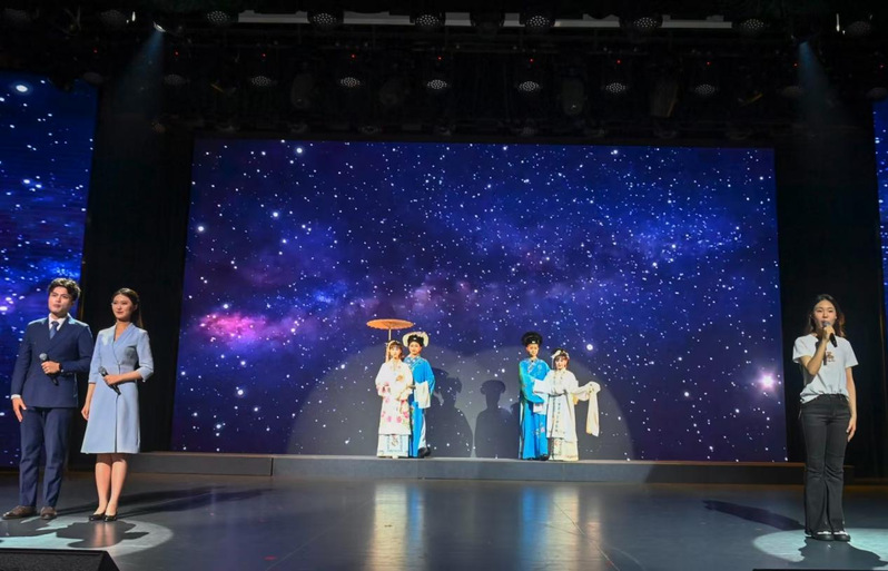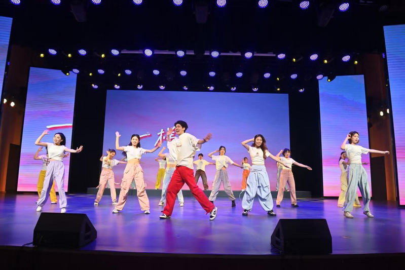 演出融合情景朗诵、相声、舞蹈、小品、配音等多元艺术形式,节目设计亮点频出。活力开场舞《奔跑的青春》瞬间点燃全场;情景朗诵的《我走在早晨的大路上》传递憧憬与梦想,创新编排的《新概念相声》以幽默语言彰显专业巧思;回溯文化根脉的《回声千年》、展示专业基本功的《诵》、聚焦社会热点的小品《送礼》、展现地方特色的《淮韵今声》,以及震撼人心的配音节目《有我》等,既传承艺术经典,又彰显时代精神,全面展现了播音学子扎实的专业功底、蓬勃的创新活力与一专多能的实践能力。