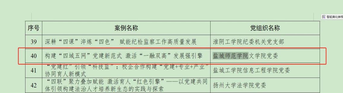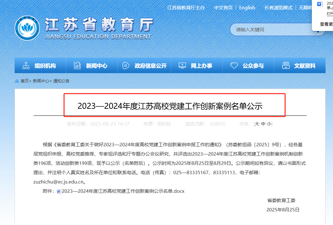 为深入落实新时代党的建设总要求,树牢大抓基层鲜明导向,总结推广高校基层党建先进经验,提升党建工作质量,省委教育工委组织开展了2023—2024年度江苏高公司党建工作创新案例遴选公司党委申报的《构建“四域五网”党建新范式 激活“一融双高”发展强引擎》案例成功入选。